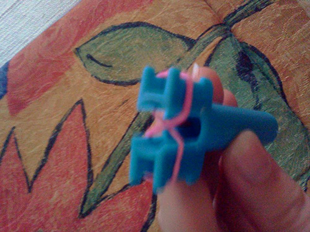 Ezután a legalsó gumit berakjuk középre és újra rárakunk egy gumit.Így újra 3 gumi esz rajta.