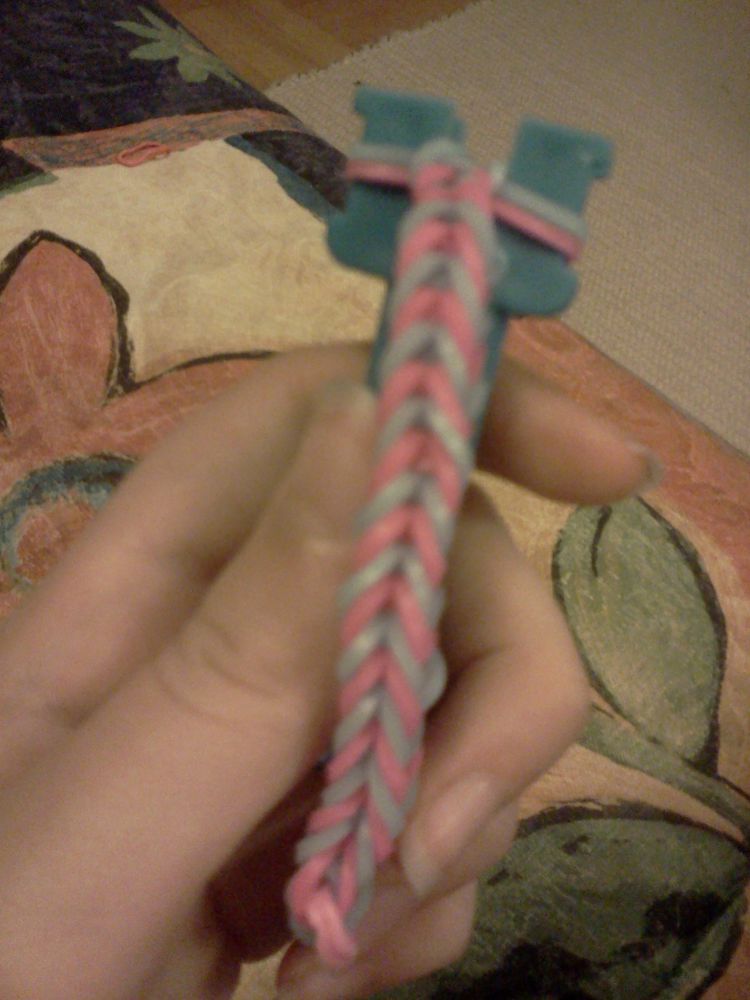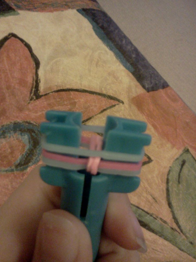 Utána tegyünk fel kettő gumit simán.A lényeg az, hogy mindig 3 gumi legyen fent és az első alkalom után a gumikat mindig simán tegyük fel.